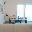 L'appartamento è composto da ingresso con soggiorno e cucina a vista, compatta ma completa, dotata di frigorifero, microonde, bollitore, piano induzione, forno e macchina del caffè.